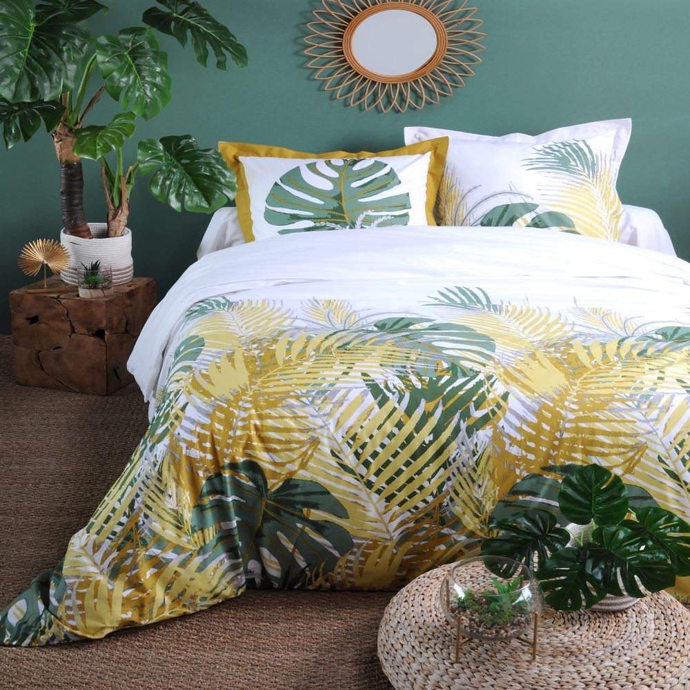 Características: Funda nórdica, medida 260x240CM+ 2 fundas de 65X65CM, estampado de hojas doradas y verdes, estilo tropical, material: 100%...
