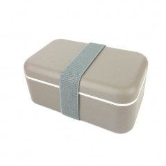Fiambrera de color gris, estilo box lunch de un solo piso. Apto para microondas i lavavajillas, sin BPA y sin melamina.
