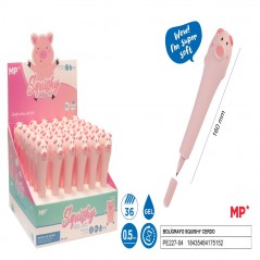 Bolígrafo de gel efecto squishy super blando. Color rosa con forma de cerdo.