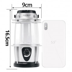 Luz de camping con luz plateada con gancho y atenuación giratoria.