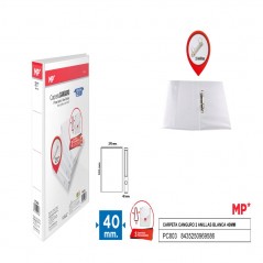 Carpeta de color blanco, estilo canguro con 2 anillas y 3 superficies personalizables.