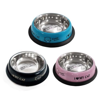 Pantone antideslizante de acero inoxidable con diseño con plato para gatos, diferentes colores disponibles