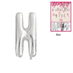 Globo de foil en forma de letra H de color plata. Resistente y reutilizable, apto para aire, adhesivos y auto cierre incluidos.
