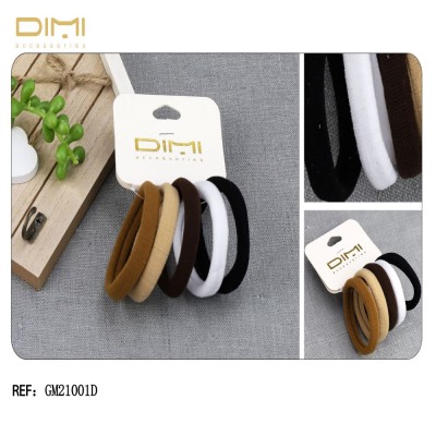 Set de 5 gomas elásticas para el pelo de color blanco, negro y 3 tonos de marrón.