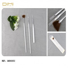 Set de 3 pinceles de maquillaje de color blanco.