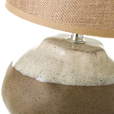 Lámpara de cerámica de tonalidades marrones y pantalla de color marrón oscuro. Cable negro con interruptor. No incluye bombilla.