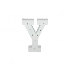 Letra Y de madera de color blanco con luces LED.