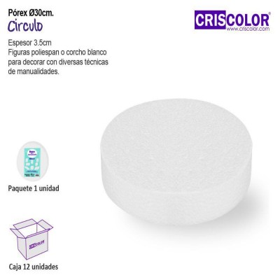 Figura de círculo de poliespán o corcho blanco para decorar con diversas técnicas de manualidades.