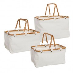 Cesta natural de color blanco con detalles y dos asas de madera. Diferentes modelos disponibles.