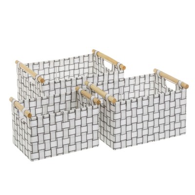 Cesta de color blanco con detalles negros y asas de madera. Diferentes medidas y modelos disponibles.