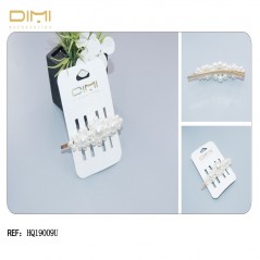 Horquilla dorada detallada con perlas blancas.