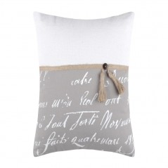 Características: Cojín medida 40x40CM, material 100% poliester, color gris, blanco con estampado y detalles en marrón