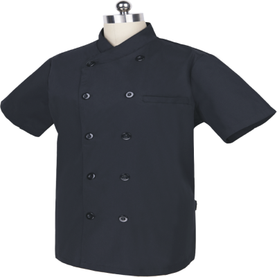 Americana para cocina de manga corta de color negro con doble botones y bolsillo. Prenda de cuidado fácil.