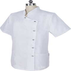 Americana para cocina de manga corta de color blanco con botones de color plata. Prenda de cuidado fácil.