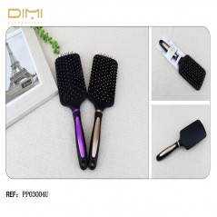 Cepillo rectangular y plano de color negro con detalles dorados o violetas. Ideal para desenredar y cepillar marcados. También se usan mucho en grandes melenas que no busquen aumentar el volumen.