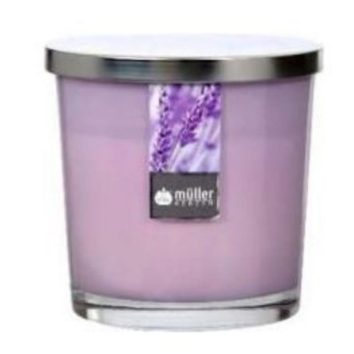 Vaso con vela y tapa, aroma de lavanda. Alta calidad.