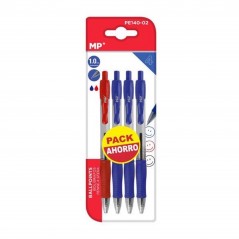 characteristics: pack of 4 pens 1 red and 3 blue, easy to hold and hook, 1mm stroke