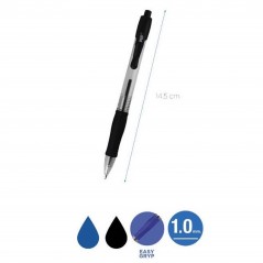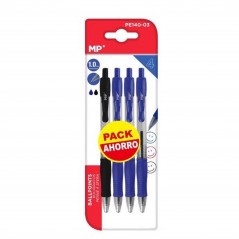 characteristics: saving pack of 4 pens, 3 blue and one black, easy to hold with a 1mm stroke
