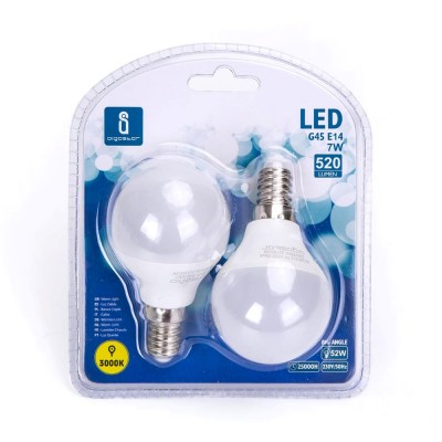Pack of 2 LED bulbs A5 G45 big angle E14 7W 3000K