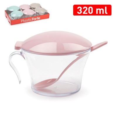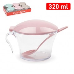 Transparent sugar bowl with lid and colored spoon. 3 models available.