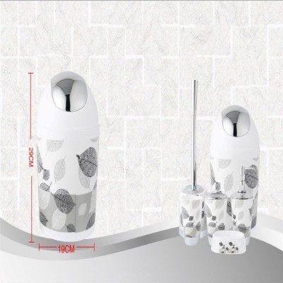 Bathroom trash can with leaf print, neutral colors and black, for bathroom, is part of a collection.