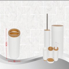 White toothbrush holder with wooden detail as a cover. You can combine it with more accessories from the collection.
