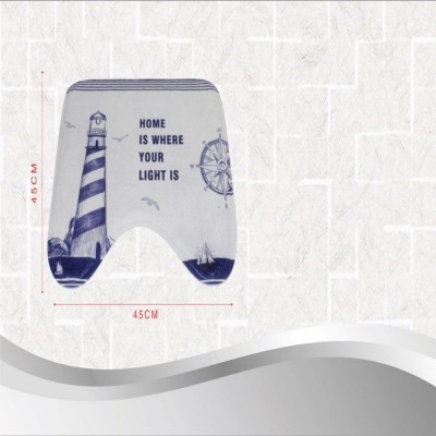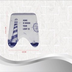 Bath mat, marine style with a lighthouse drawing and the phrase "Home is wher your light is".