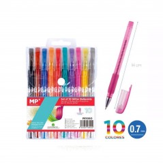 color: glitter features: pack of 10 pens of different colors with glitter, 0.7mm stroke