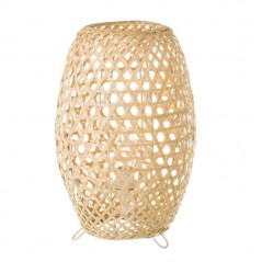 Elongated beige lamp, natural bamboo rattan style. Two models available. White wire, switch on the wire. Does not include bulb.