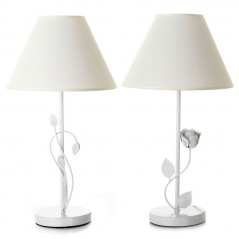 White metal lamp with details of branches with leaves coming out of the base. Blank cable with switch. Does not include bulb.
