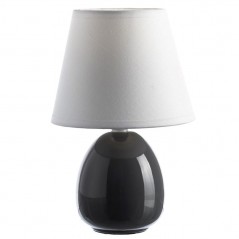 Ceramic table lamp. Black base and white screen. White cable with switch. Does not include bulb.