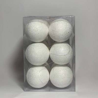 Set of 12 Christmas balls, white with glitter