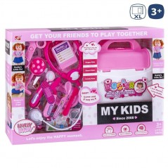 Set of doctor in pink briefcase.