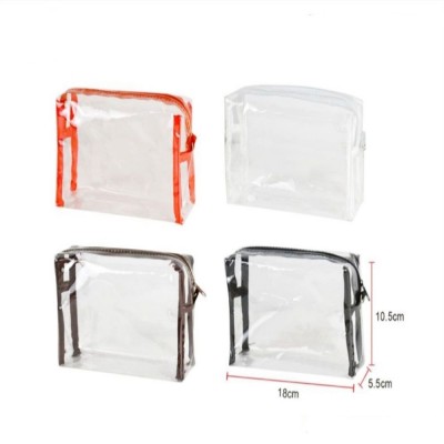 Transparent toiletry bag with brown stitching. Different models available.