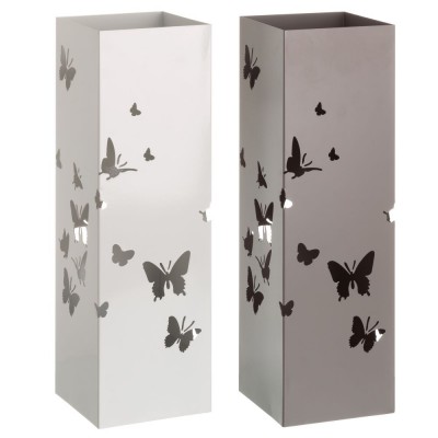 Square umbrella stand with butterfly-shaped details. Two colors available.