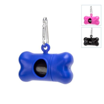 Trash bag dispenser with a filler, bone shaped, different colors available.