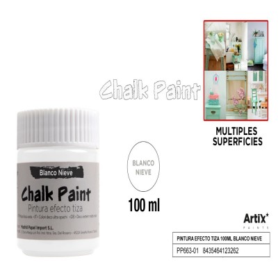 Snow white chalk effect paint, ideal for multiple surfaces.