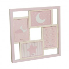 Multiple photo frame consisting of four pink frames with a wooden edge. Different models available.