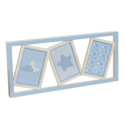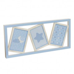 Multiple photo frame consisting of three blue frames with wooden edge and rectangular edge. Different models available.