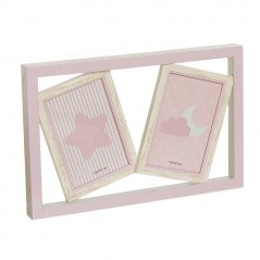 Multiple photo frame made up of two pink frames with a wooden edge and a rectangular edge. Different models available.