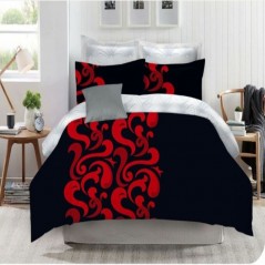 Nordic set consisting of 4 pieces. Black game with red details. Different sizes available. Contains two pillowcases (50X75 CM), a countertop (220X220 CM) and an adjustable bottom sheet (135X200 CM).